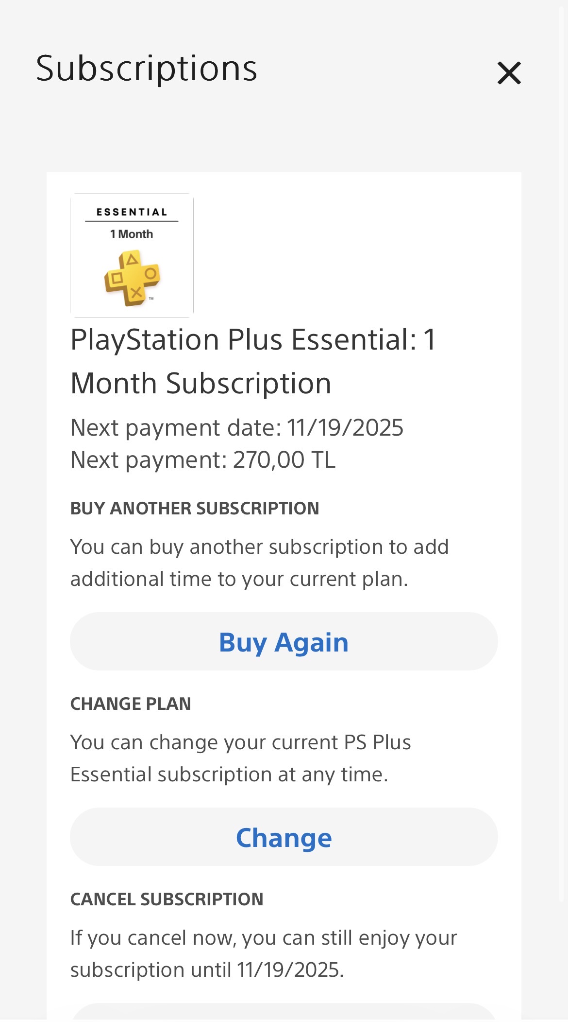 Аккаунт имеет активную подписку PlayStation Plus Essential, действующую до 19.11.2025. Подписка обеспечивает доступ к онлайн-мультиплееру, ежемесячным бесплатным играм, облачному хранилищу сохранений и эксклюзивным скидкам в PS Store.