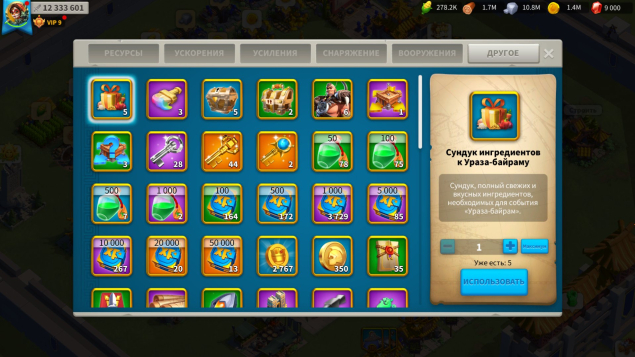 Много ресов, ускоров, и вещей.