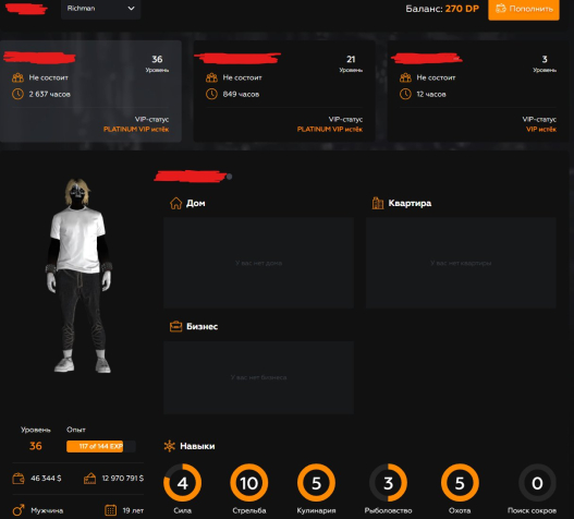 Сервер: Gta5rp.com №08 Richman (цена за 1к)Уровень: 36