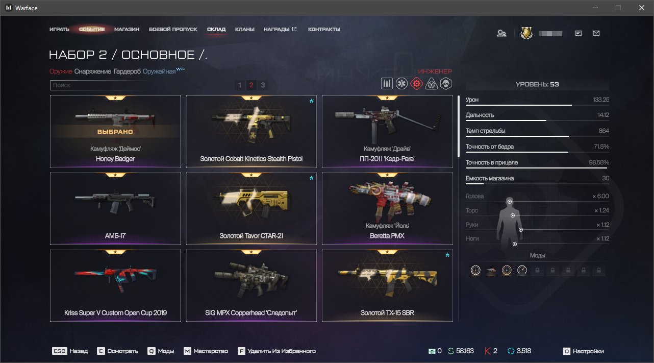 ✔️ Все девайсы на золотых модах, многие старые и новые пушки прокачены на золотые моды