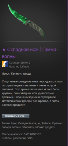 Краткое описание: Продам Складной нож Гамма волны (эмиральд)