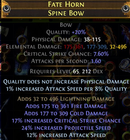Подробное описание: Элементальный лук для ЛА, ТШ или Эле хита 1300+ дпс, крит и скорость атаки, мега буст дпса, идеально на старте лиги с таким можно бегать и т17 карты, доставка в течении пары минут если я онлайн, уточняйте наличие.