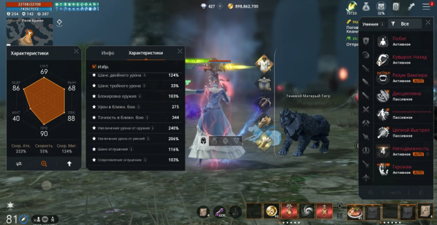 ℹ️ Другие Характеристики: Крит Атака 148%, Шанс Двойного Урона 124%, Шанс Тройного Урона 43%, Блокировка Оружия 103%, Увеличение Урона от Оружия 240%, Увеличение Урона от Умений 226%, Сопротивление Оглушению 95%, Шанс Оглушения 116%..