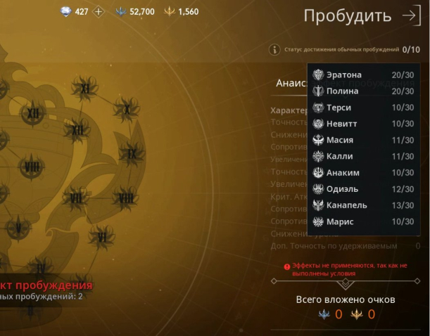 Эратона 8-9-9 +2 скилл; Полина 8-9-9 +2 скилла; Терси 5-6-5 +1 скилла; Невитт 6-6-6 +1 скилла; Масия 5-6-6 +1 скилл; Калли 6-5-6 +1 скилл; Анаким 5-6-5 +1 скилл; Одиэль 7-5-6 +1 скилла; Канапель 8-6-5 +1 скилл, Марис 6-7-5 +0 скилл.