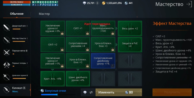 ℹ️ Другие Характеристики: Крит Атака 172%, Шанс Двойного Урона 122%, Шанс Тройного Урона 22%, Блокировка Оружия 131%, Увеличение Урона от Оружия 227%, Увеличение Урона от Умений 209%, Сопротивление Оглушению 104%, Шанс Оглушения 66%.