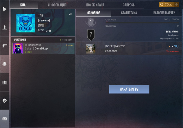 🐠🉐 Клан [rakym], 70 голды на балансе