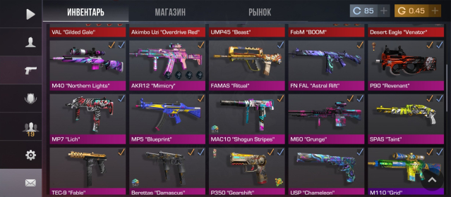 Подробное описание: Есть крутой сет: нож перчи и скины на все виды оружия