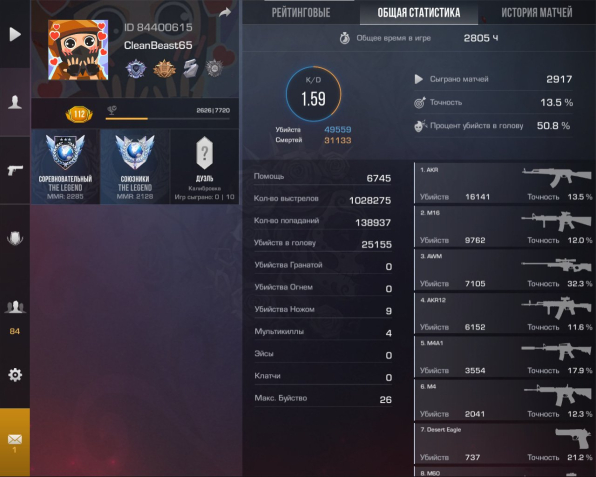 Звание: LegendКраткое описание: 🐉ПОЧТИ 3К ЧАСОВ ДАЙМОНД ВЕТЕРАН 21 ГОДА/ЭЛИТА 4-5 СЕЗОН/ДАБЛ ЛЕГА В ЭТОМ🐉