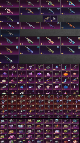 ❌ Прокачиваемые оружия — M416 «Ледник» (ур. 6) | AWM «Полевой котандир» (ур. 1) | M762 «8-битный пони» (ур. 4) | ПП-19 «бизон» «Сияющий хамелеон» (ур. 1) | ВСС «Ворон» (ур. 1) | Mini14 «Сосулька» (ур. 1) | QBZ «Ослепительное солнце» (ур. 1) | Kar98K «Милость Луны» (ур. 2) | СКС «Леди Кармин» (ур. 1) | ДП-28 «Дракон из нефрита и золота» (ур. 2) | Мачете «Остатки погибели дракона» (ур. 1) | UMP45 «Морская эволюция» (ур. 3) | ДП-28 «Шенрон» (ур. 1) | Арбалет «Кошмарный цирк» (ур. 1) | DBS «Дерзкий леопард» (ур. 1) | Автотат Томпсона «Изысканная сирень» (ур. 3) | Кar98K «Которитм» (ур. 1) | пп-19 «Бизон» «Ночной гладиатор» (ур. 1) | SI2K «Атомный триггер» (ур. 1) | ДП-28 «Цифрокотик» (ур. 1) | SLR «Мелодия морских грез» (ур. 1) | NS2000 «Нержавеющий бродяга» (ур. 1) | SCAR-L «Заряд вкуса» (ур. 3) | М249 «Протокол хищника» (ур. 3) | МР7 «Конфетный призрак» (ур. 1)