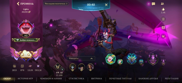 Краткое описание: 155 УРОВЕНЬ. 90 СКИНОВ. 3 ТЫС. ЛАЙКОВ. ВР 55% ЗА 2 ТЫС. ИГР, 90 ЧЕМПИОНОВ