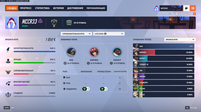 1) Аккаунт с первого овера (начинал играть в 2017 году)