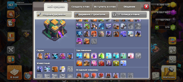 Уровень Ратуши: 14Краткое описание: 14 ТХ — 13 ФУЛЛ | ДОНАТНЫЙ АККАУНТ | 5 РАБОВ | СКРИНЫ В ОПИСАНИИ