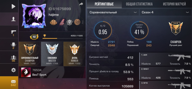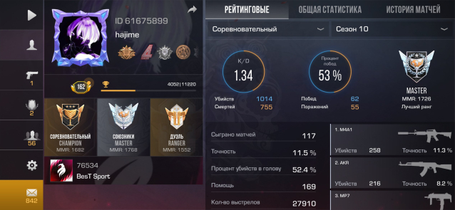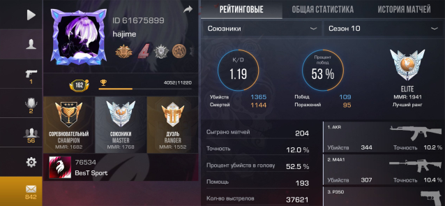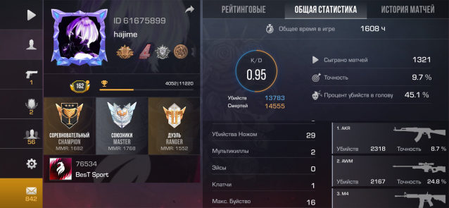 Звание: MasterКраткое описание: 💥🛑Stiletto «Damascus»🛑❤️🔥Gloves «Gambit»❤️🔥🏅10 Медалей🏅🥶1608+ Часов🥶💜VETERAN 2020💜📀≈2000G+ ИНВ📀