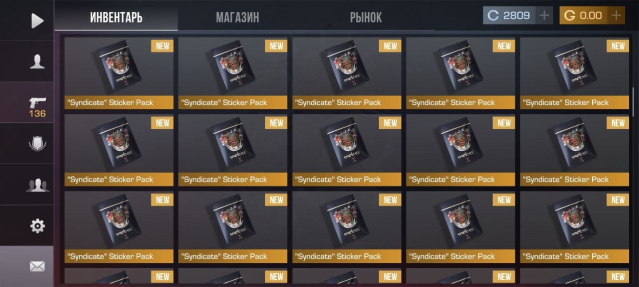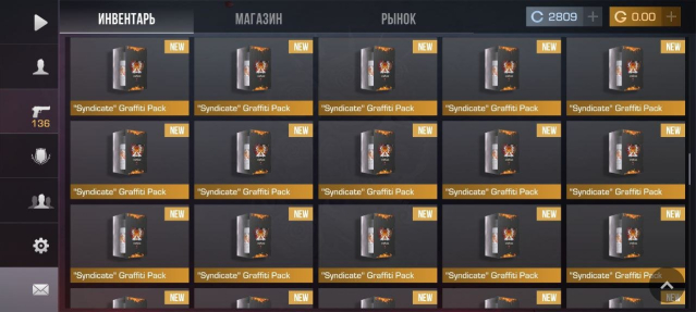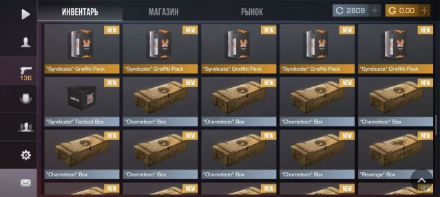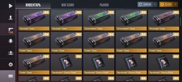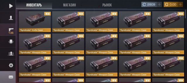 Кейсы: «Syndicate» Knife Case (1), Syndicate Tactical box (1) «Syndicate» Weapon Case (14), Dynasty (2), Chameleon (2), Fable (6) Revenge (1) и другие.
