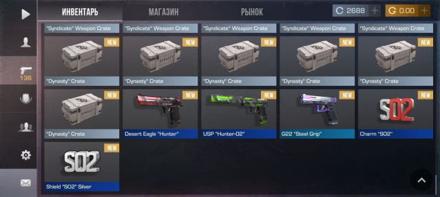 Кейсы: «Syndicate» Knife Case (1) «Syndicate» Weapon Case (14), Dynasty (4), Fable (4) Revenge (3) и другие.