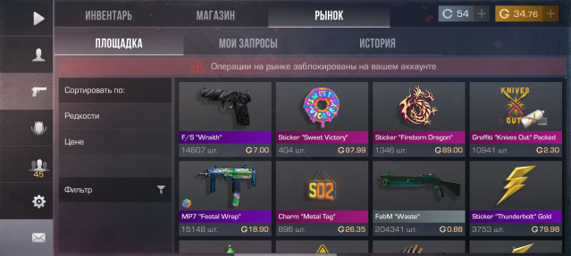 на аккаунте присутствует блокировка рынка, т.е. вы не сможете покупать/продавать скины, но на игровой процесс это никак не влияет, все скины в инвентаре отображаются в катке и их можно снять/надеть.