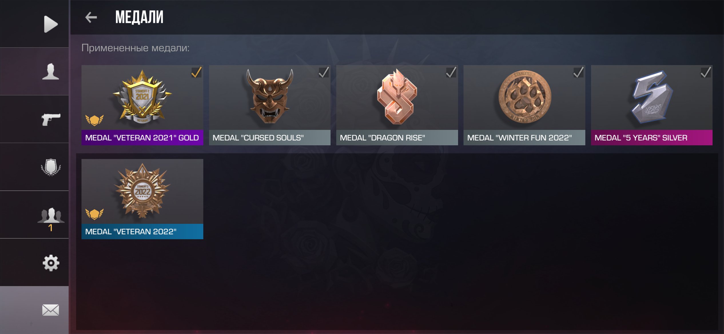 Звание: Gold lVКраткое описание: 🔥Акк 🟥MEDAL «VETERAN 2021» GOLD🟥 ⏰750+ Часов⏰ 🥶6 OLD Медалей🥶 ♥️МНОГО БРЕЛКОВ♥️🟡OLD ID:🟡💀99958755💀