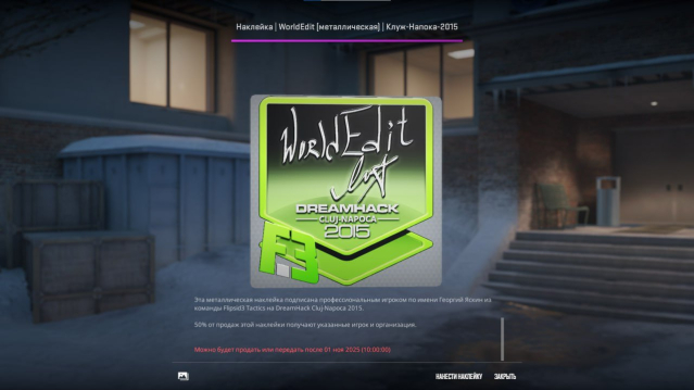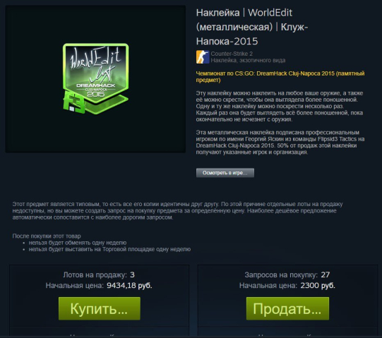 Также подойдет коллекционерам и инвесторам. Будучи металлической версией с автографом игрока из команды которой к слову уже не существует, эта наклейка представляет интерес с коллекционной точки зрения. Такие предметы часто со временем растут в цене, особенно когда тираж сокращен до минимума. (т.к. коллекция не так уж и популярна, она была выбита и капсулы которых на торговой площадке менее 20 штук, и наклеек конкретно этого игрока всего 5 штук считая мою.)