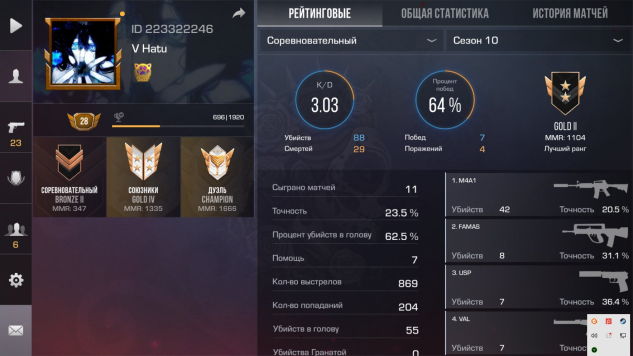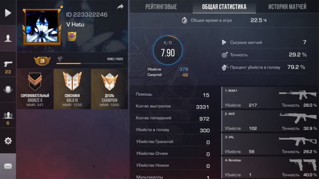 Звание: ChampionКраткое описание: ID 223322246, аккаунт с красивым ID, с калибровкой