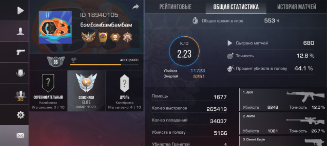 Звание: EliteКраткое описание: Очень старое id на 1, медаль 2019 года, феникс и 3,5 кд в первом сезоне союзников, сейчас elite