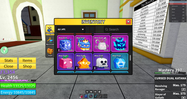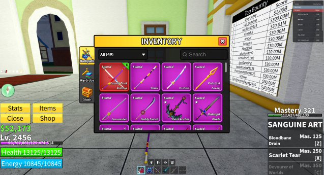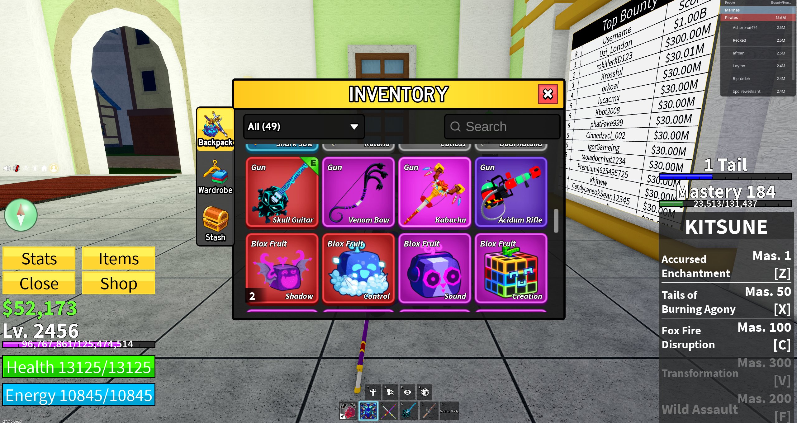 💖 Blox Fruits: 2456 lvl, Sanguine Art ( 321 Mastery ), Cursed Dual Katana ( 321 Mastery ) и очень много розовых мечей, Skull Guitar ( 171 Mastery ), Venom Bow, Kabucha, Shadow Fruit ( 2 ), Control Fruit, Sound Fruit, Creation Fruit, Quake Fruit ( 2 ), Phoenix Fruit, Spider Fruit, Lighting Fruit. Holiday Cloak.💤 СЬЕДЕН KITSUNE FRUIT ( 184 MASTERY ) 💤