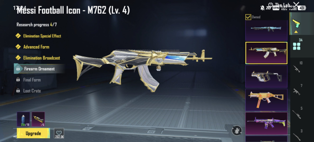 Glacier M4 Lvl 7 max ,The seven seas akm Lvl 4,Messi Football Icon Level 4, Mauve Avenger awm Lvl 4, Forest Raider Groza Lvl 4, Forsaken Gloce Aug Lvl 1, Soul specter shredder Lvl 1, Drop the Bass Scar l Lvl 1 and...