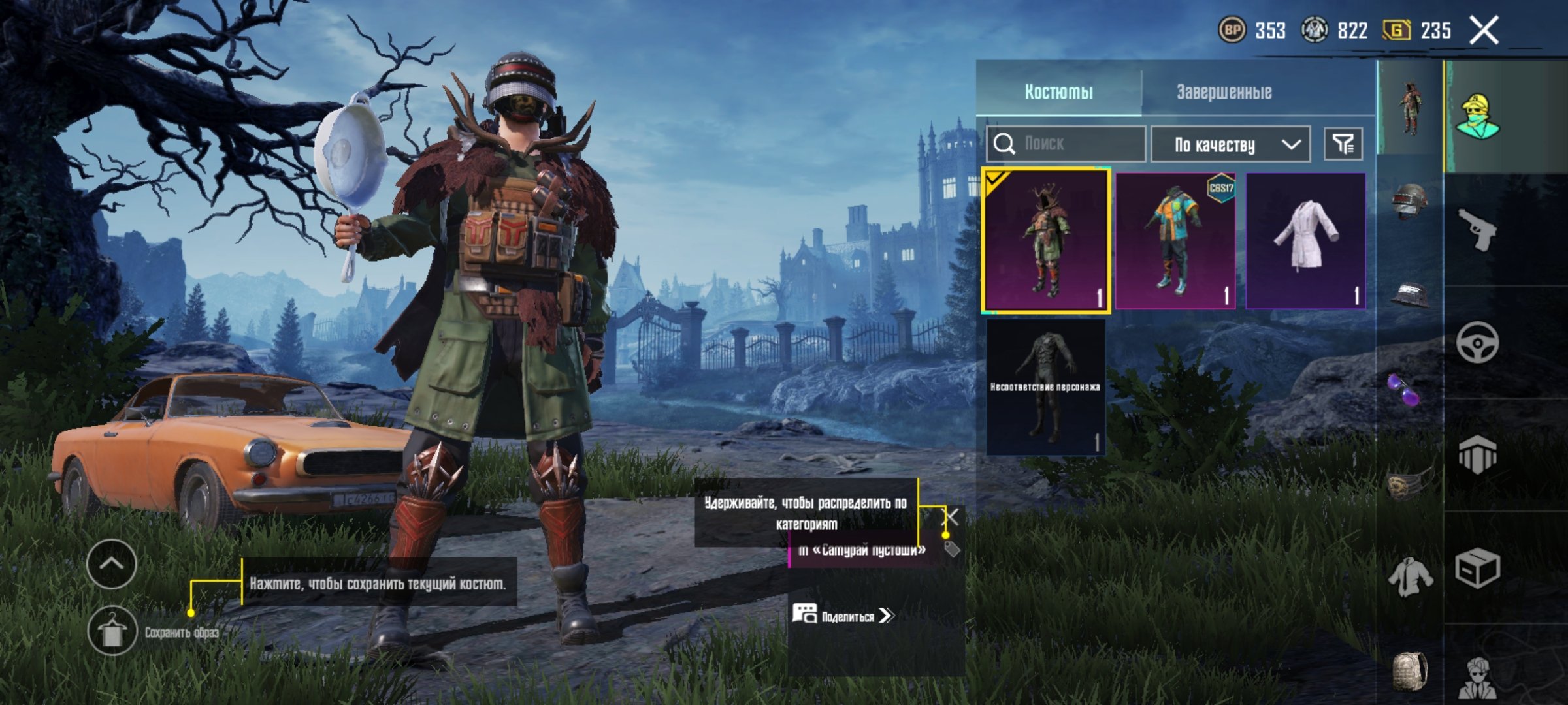 Краткое описание: Костюм (лега) «17 сезон, Самурай пустоши», Брелок (лега) «Темный фрукт»
