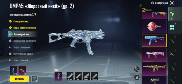 Прокачиваемые оружия: 1-9