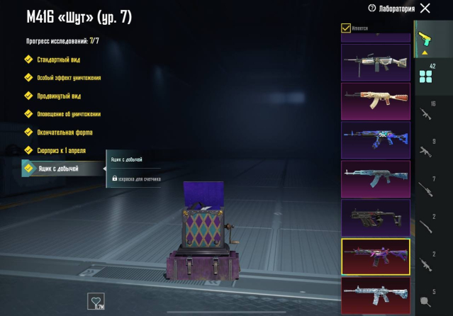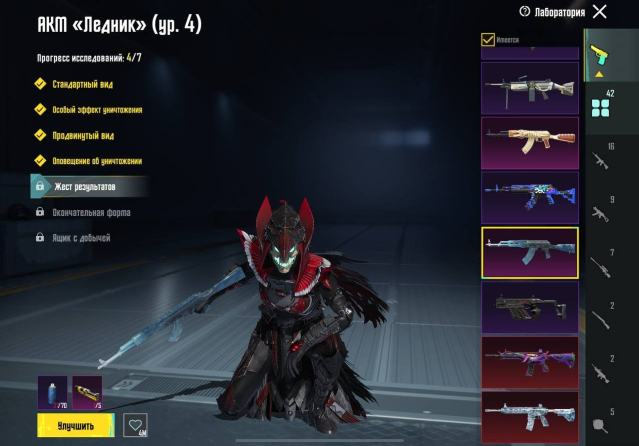 ❗ MK14 «Галактическая позолота» — Уровень 5 → АКМ «Ледник» — Уровень 4 → М762 «8-битный пони» — Уровень 4 → SCAR-L «Мощный бас» — Уровень 4 → M416 «Печать преисподней» — Уровень 4 → АКМ «Пустынная окаменелость» — Уровень 3