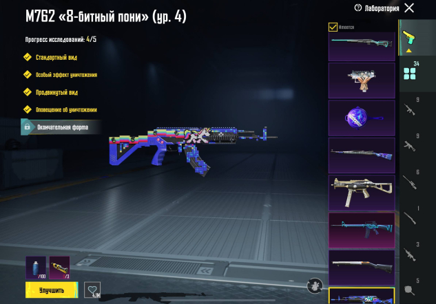 ❗️ МК14 «Галактическая позолота» — Уровень 5 → M762 «8-битный пони» — Уровень 4 → UMP45 «Эми» — Уровень 4 → UMP45 «Морская эволюция» — Уровень 3