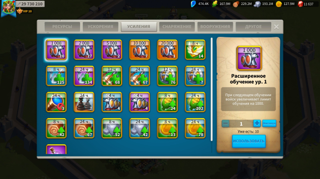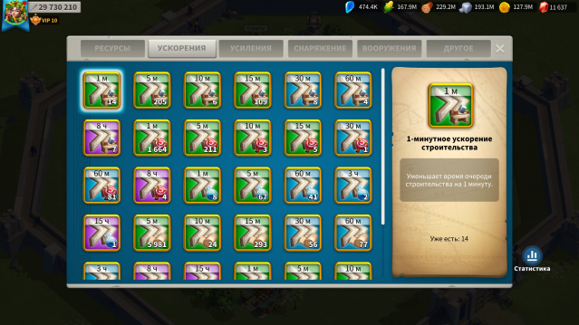 7.Очень много ресурсов и ускорений ( Чек скрин )