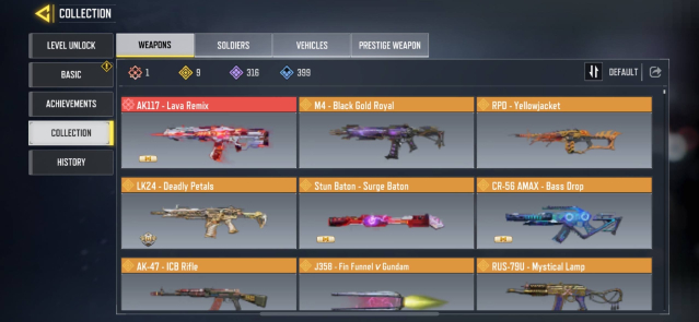 🔫 Skins Gun: 1 Mythic — 9 Legendary — 316 Epic — 399 Rare🔫