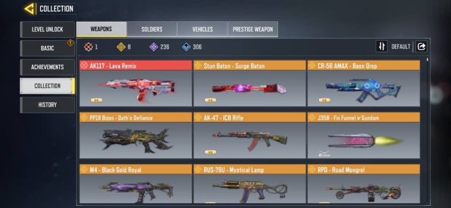 🔫 Skins Gun: 1 Mythic — 8 Legendary — 236 Epic — 306 Rare🔫