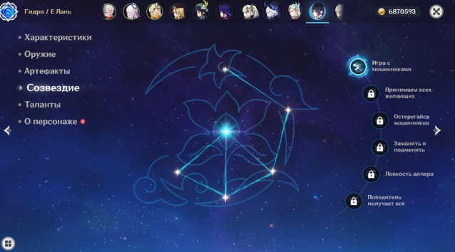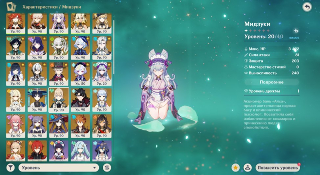 Мавуика | Кадзуха + сигна | Ситлали | Шилонен | Навия | Венти + сигна | Райден + сигна | Нахида | Фурина С2 | Невиллет + сигна | Е Лань С1 + сигна | Арлекино + сигна | Лини + сигна | Странник | Джинн С4 | Ризли | Аяка + сигна | Яэ Мико | Ке Цин С2 | Мона С3 | Тарталья | Дехья С1 | Еимия + сигна | Дилюк С3 | Цици С5 | Мидзуки