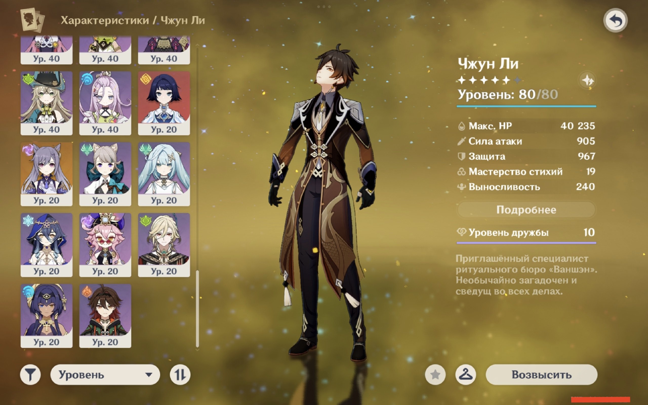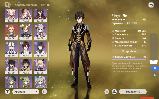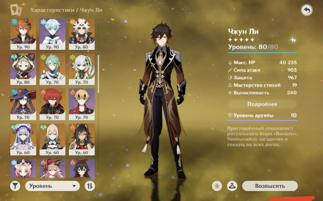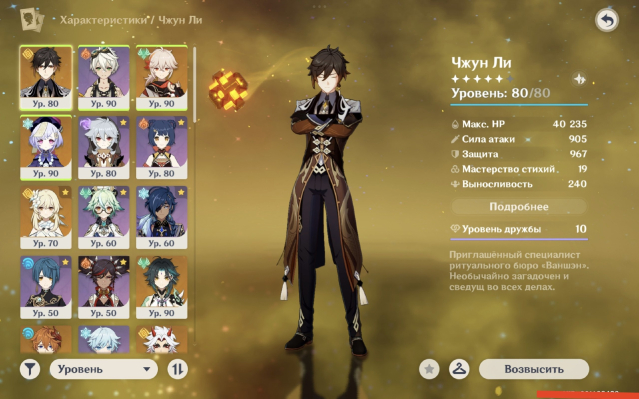 Подробное описание: 5*: Чжун Ли, Кадзуха, Ци Ци, Сяо, Тарталья, Итто, Бай Чжу, Нахида, Мона, Дилюк, Мидзуки, Джинн, Дэхья, Навия, Ризли, Кинич, Кэцин