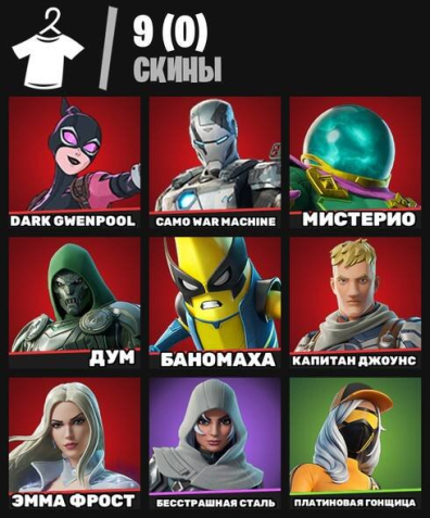 Краткое описание: 9 скинов, 1000 В-баксов, 718 уровень, Можно поменять почту, Вечная гарантия, Скрины в описании
