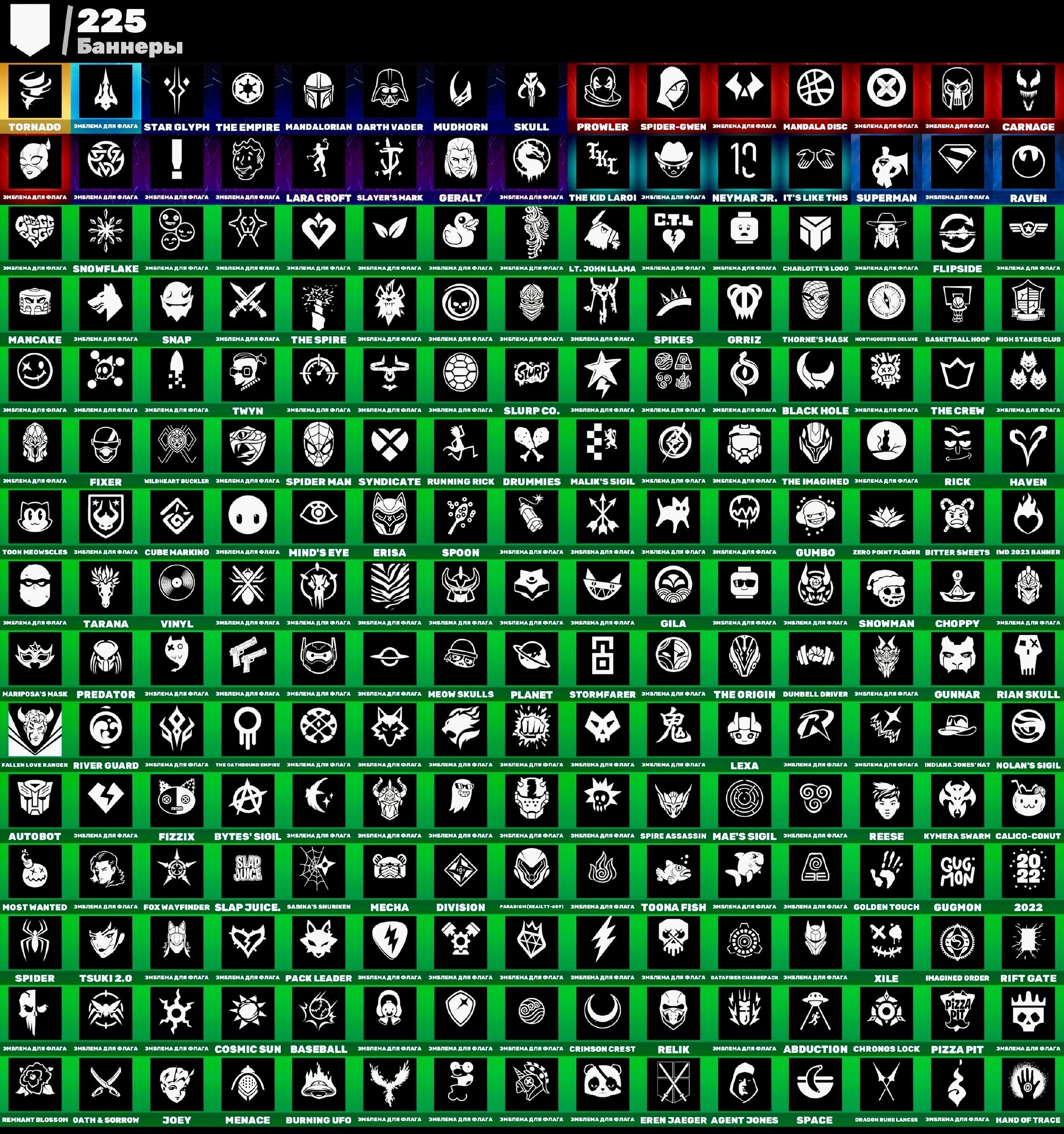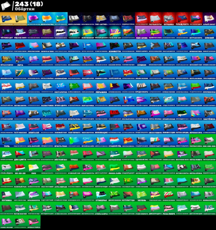 🛬 Дельтапланов: 202 🍬 Обёртки: 243 💟 Баннеры: 225 🎨Граффити: 336 🥇 Эксклюзивов: 50+ 👠 Максимальные стили: 125