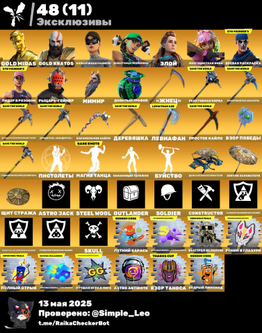Краткое описание: ❗OG PVE(130 мощь)❗Kratos(gold style)❗Скины fortnite crew❗много покупных скинов