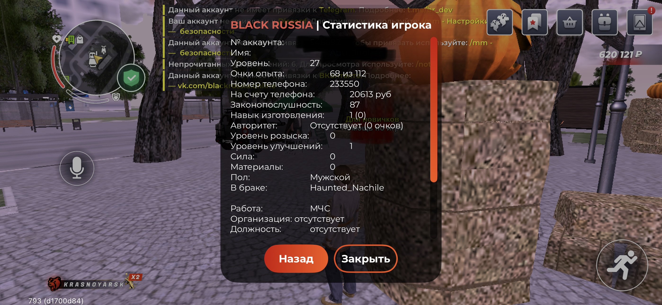 Краткое описание: 🟡Быстрая ВЫДАЧА🟡⚜️BLACK RUSSIA⚜️🔮Krasnoyarsk🔮🟡27LVL🟡🔮БАЛАНС 621К🔮🔮БЕЗ ПРИВЯЗОК🔮