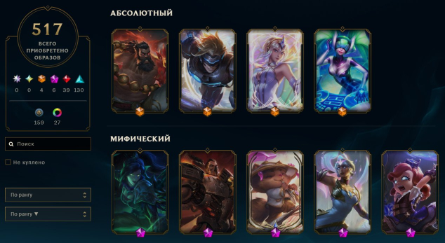 🌷Редкие Скины: Красный Барон Корки, Fnatic Корки, Fnatic Жанна, TPA Эзреаль, Праздничный Кассадин, Пантеон-Персей, DJ Сона, Санта-Грагас, Fnatic Грагас, TPA Мундо, Riot K-9 Насус, Победоносная Анивия, Хекстек-Анивия, Ванкуверский Амуму, Эмуму, Переподаренный Амуму, Большой сюрприз Амуму, SKT T1 Экко, Джентльмен Чо'Гат, Экко Импульсный Огонь, Fnatic Картус, Zed Чемпионата мира 2016, SKT T1 Вейн, Вейн, Пожирательница душ, SKT T1 Джакс, Посох бога Джакс, Победоносный Триндамир, Победоносный Люциан, SSW Ренгар, Riot Тристана, SKT T1 Элиза, SSG Джарван IV, SKT T1 Ренектон, SKT T1 Зайра, Ривен Чемпионата мира 2012, Возрожденная Ривен Чемпионата мира 2012, Победоносный Атрокс, Riot Кейл, SKT T1 Райз, TPA Орианна, TPA Шен, SKT T1 Азир, SKT T1 Алистар, SKT T1 Олаф, SKT T1 Калиста, Победоносная Седжуани, Хекстек-Синджед, Хекстековая Энни, Riot Блицкранк, Riot Кейл, Традиционный Ли Син, SKT T1 Ли Син, TPA Нуну и Виллумп, Riot K-9 Насус, SKT T1 Вейн, SKT T1 Ренектон, SSW Талон, SSW Треш, SSG Рэйкан, Победоносный Грейвз, Победоносная Седжуани, Победоносный Люциан, Победоносный Триндамир, Победоносная Анивия, Победоносный Атрокс, Ривен Чемпионата мира 2012, Возрожденная Ривен Чемпионата мира 2012, Красный Барон Корки.