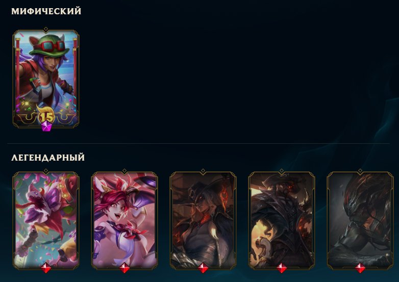 Мастер Йи, Триндамир, Ког Мао, Сона, Юбилейная сивир, Поборник чести Мальзахар, Поборник чести Шен