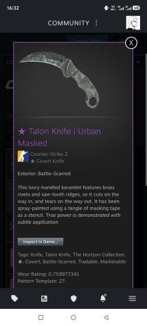 Краткое описание: ★ Talon Knife | Urban Masked (Закаленный в боях) 0.7599 флот
