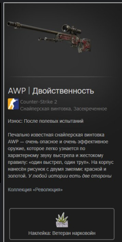 Подробное описание: 💫В продаже «AWP | Двойственность» Наклейка: ветеран НаRковоин