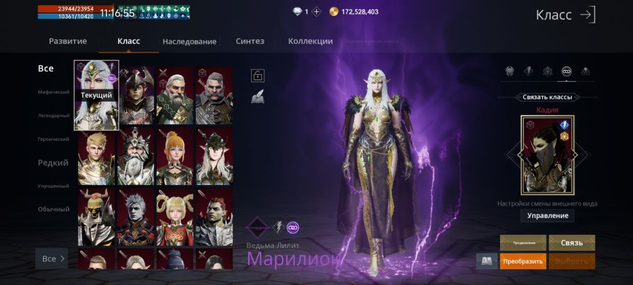 1. Карта класса Фиол (Марилион) не пробуждена, но стоит связь с пробужденной и преображенной (Кадия ) .