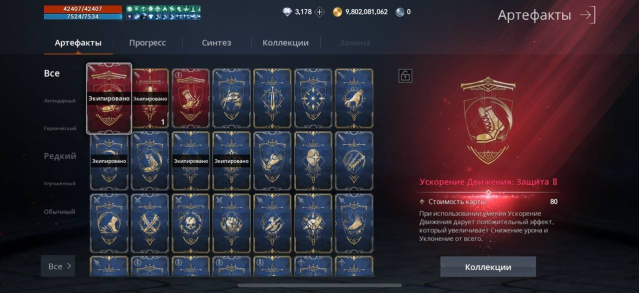 Коллекции: обычка 34, улучшенная 18, редкая 6, ивент 19.