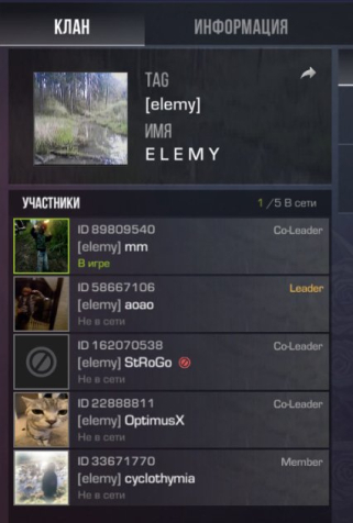 Находится в клане 'elemy' с рангом Co-Leader