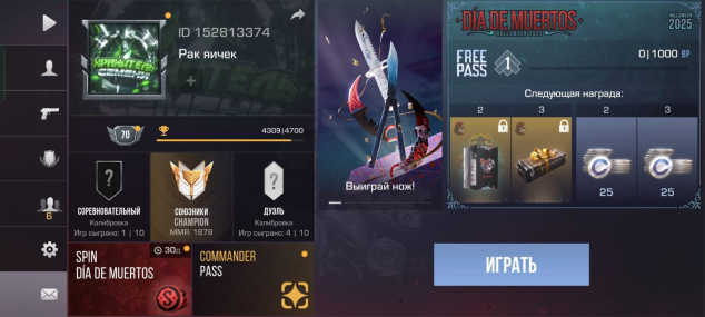 Звание: ChampionКраткое описание: Аккаунт стандофф 2 есть нож перчатки и остальные скины на скрине