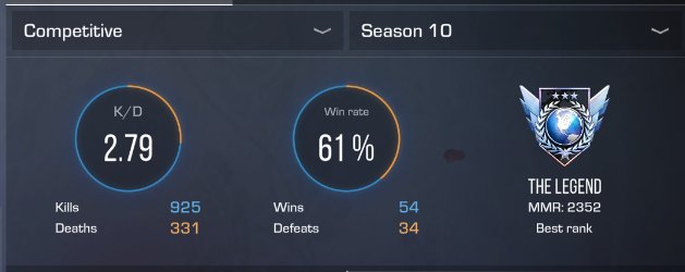 Звание: LegendКраткое описание: ✅triple legend 9-10s | 126 lvl, 360 часов, 4 медали | Смотри описание ✅