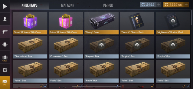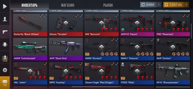 Скины включая нож и тд, все скины посчитал на рынке и курс взял 0.6, все расчитано!
