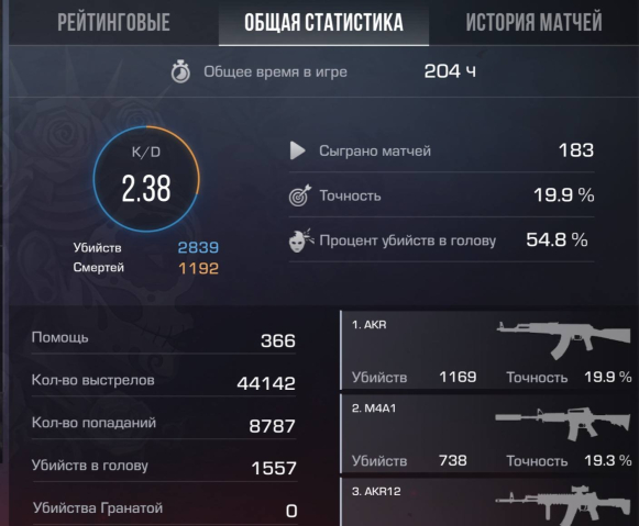 ▪︎ Аккаунт 205 часов и общее кд 2.38